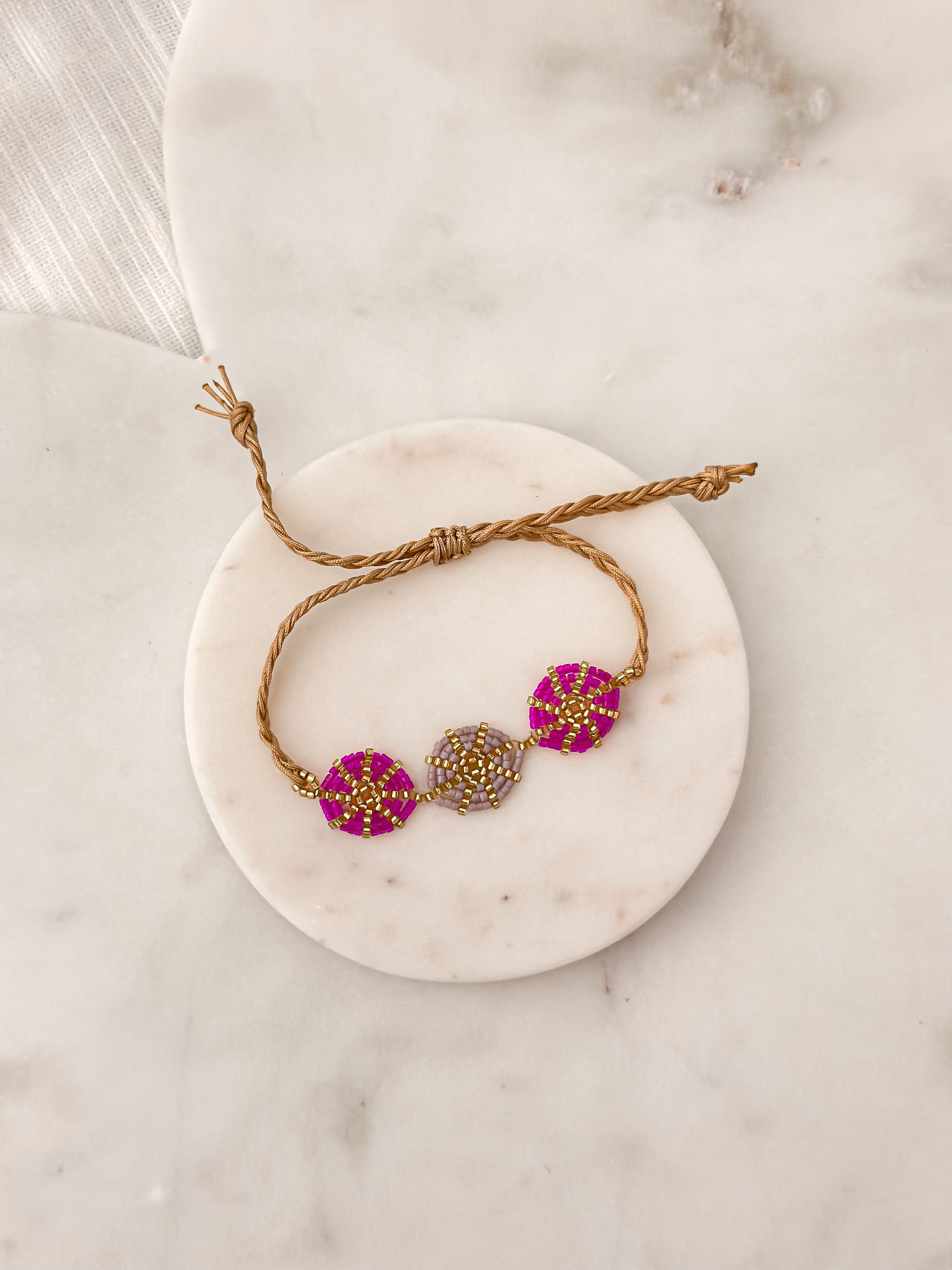 Pulsera ajustable hecha a mano, diseñada con múltiples hilos que crean el efecto de llevar varias pulseras en una sola pieza. Elaborada con finas cuentas Miyuki y cordón de nylon resistente, esta pulsera ofrece un estilo moderno, colorido y delicado. Su diseño liviano y cómodo la hace ideal para el uso diario, perfecta para complementar cualquier look y añadir un toque único y artesanal.