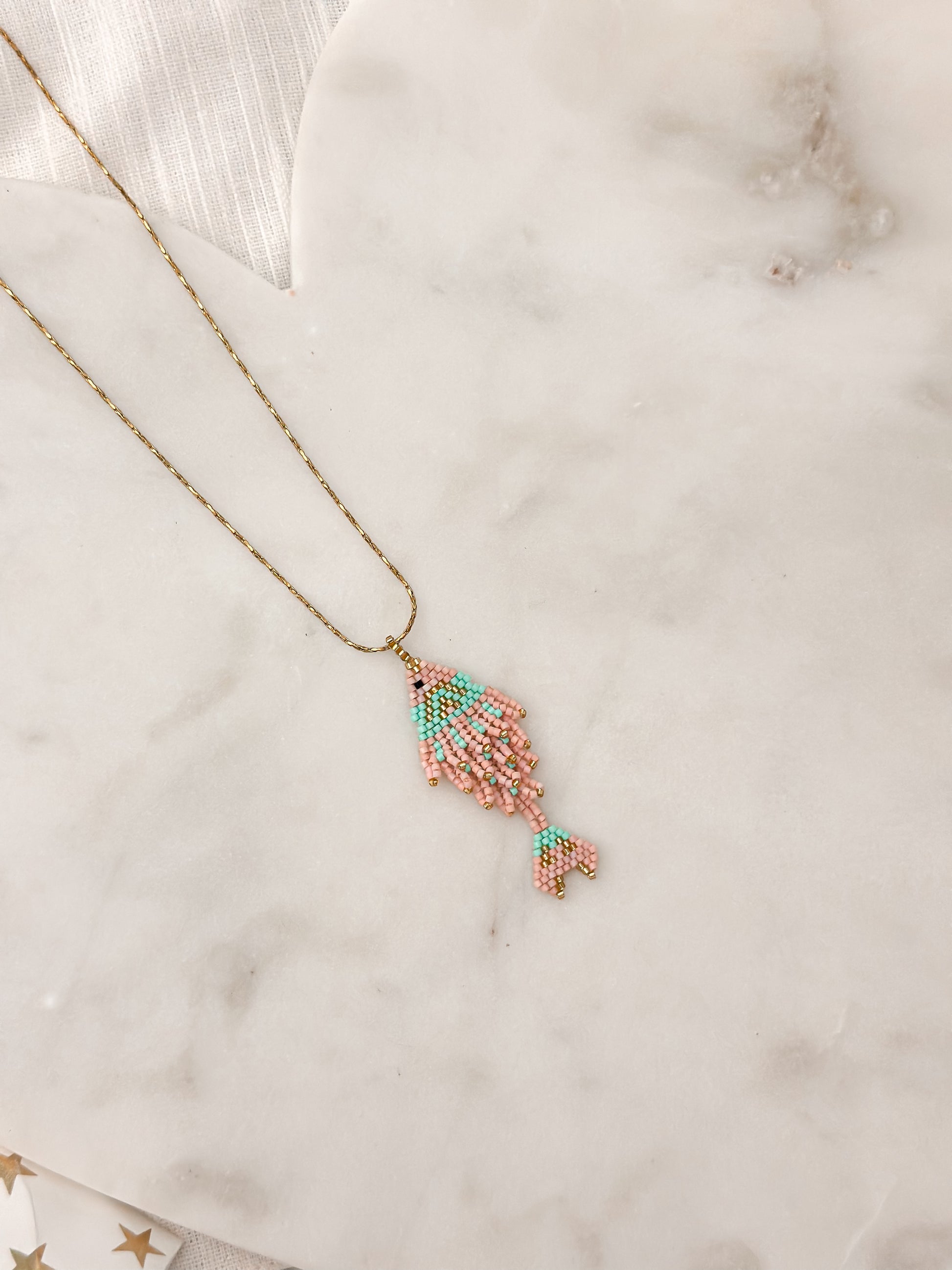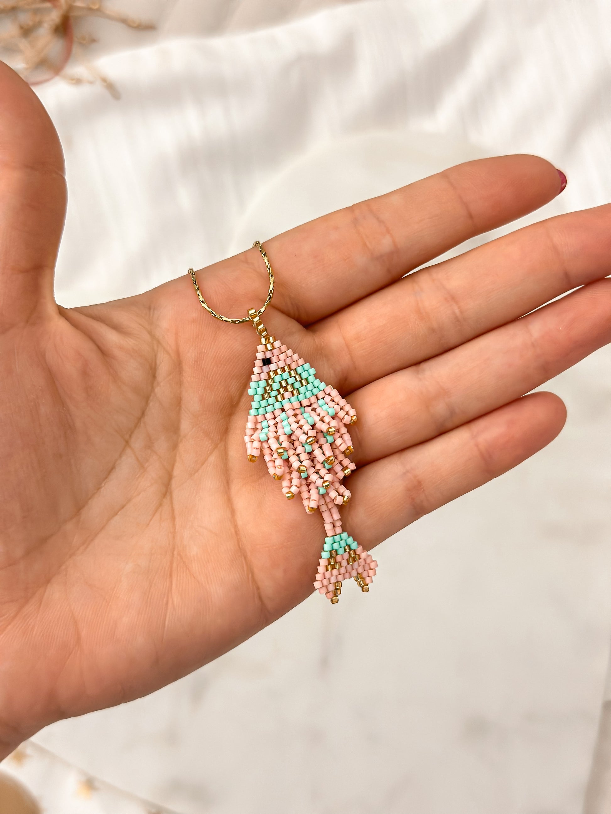 Este collar hecho a mano cuenta con una cadena de acero inoxidable resistente e hipoalergénica, acompañada de un colgante de cuentas Miyuki. Perfecto para el uso diario o para combinar con otros collares y lograr un estilo único y moderno.