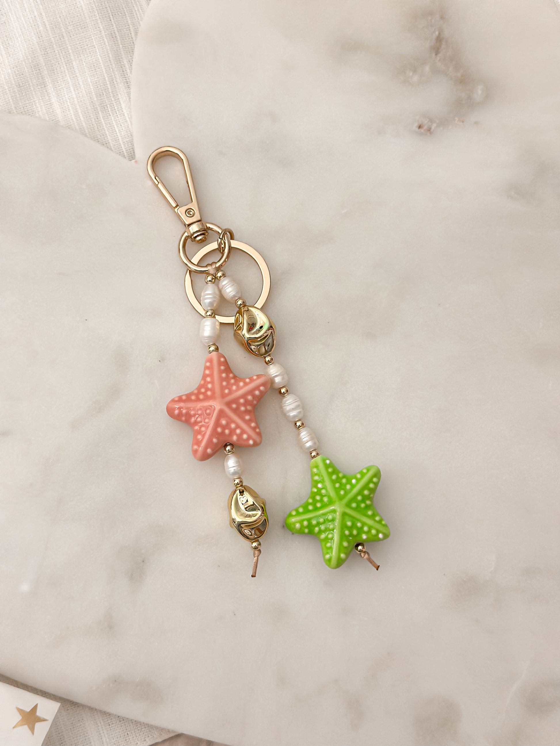 Este keychain/bag charm está diseñado para añadir un toque único y elegante a tus llaves, cartera o bulto. Cada pieza se trabaja cuidadosamente a mano, combinando materiales de calidad y detalles que resaltan tu estilo personal.